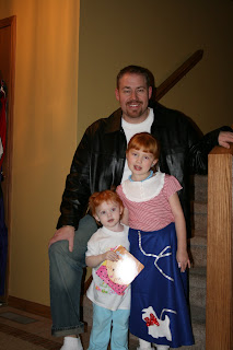 On Friday Jan. 23rd, Cooper and Chad attended the annual Girl Scout Sock Hop. Somewhere along the way the tradition was started that it was a father/daughter dance, so Chad graciously accepted. Of course a girl needs a "poodle skirt" to wear to the sock hop, or in Cooper's case a "scotty skirt." Chad's mom, Jane, helped Cooper and I at the fabric store choose a pattern and buy all the supplies needed to make this skirt. I haven't sewn anything in a long time, but luckily I do know how to sew, just enough. So I cut everything out and thankfully Jane sewed everything together, in under 2 hours the skirt was done! Cooper doesn't have an eye for fashion yet, and it's always one of our biggest fights in this household, what to wear or what goes together. So after a lot of grumbling she was dressed and they were on their way. They had a great time and even danced in the dance contest, although they didn't win. I hope Cooper can remember these fun times forever. We are hoping Campbell will wear the "scotty skirt" some day too.